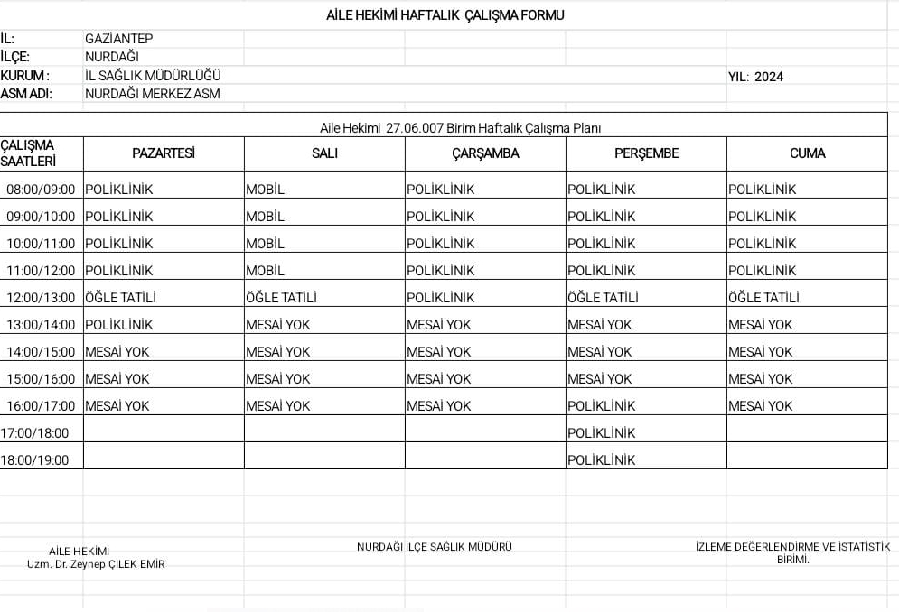 Çalışma Saatlerimiz